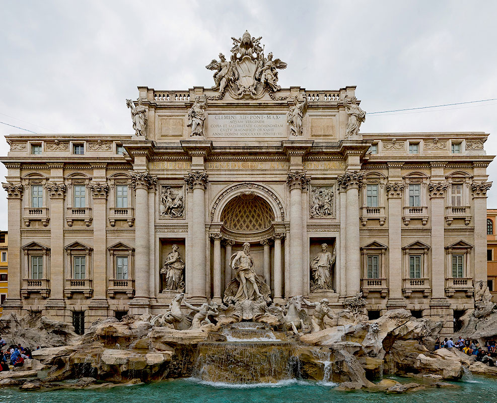 Экспрессивный декор в стиле барокко фонтана Треви. Архитектор Никола Сальви. 1732-62 гг. Рим.
