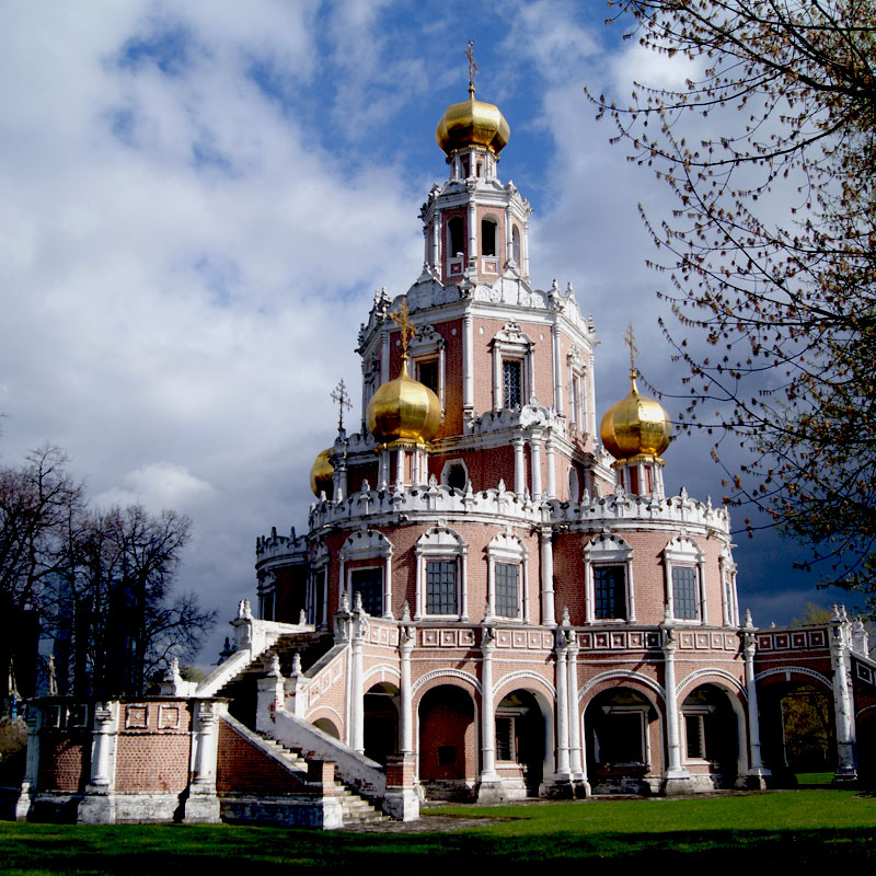 Церковь Покрова в Филях (1692-1693 гг.) в его подмосковном имении Нарышкиных декорирована элементами барокко.