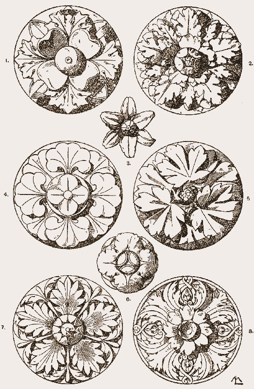 Розетки классицизма из «Руководства по орнаменту». Автор Франц Майер.1898 г.