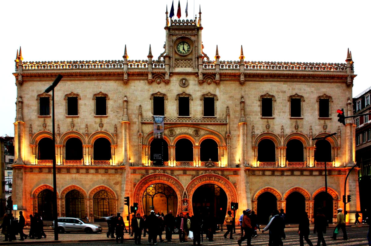 Другой пример мануэлино: фасад вокзала Руссиу в Лиссабоне (Estação de Caminhos de Ferro do Rossio).