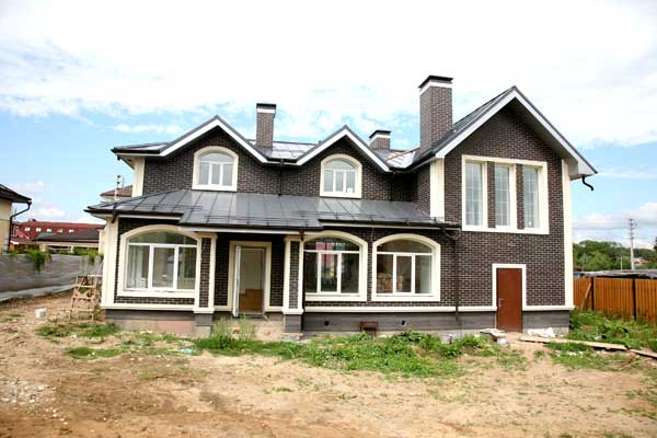 Насыщенный шоколадно-коричневый цвет клинкерной клитки и светлая расшивка швов придали более благородный вид стандартной кладке. Основу декоративного оформления этого дома составили молдинги мм0050 ступенчатого профиля. Весь декор из полиуретана окрашен в кремовый цвет, совпадающий с тоном швов кладки.