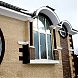 Окна схвачены в широкие темно-кофейные рамки молдингов мм0100, контрастирующие с их белоснежными рамами. И только прямоугольное окно возле входной двери имеет белый подоконный элемент (молдинг мм0290), гармонирующий по цвету с переплетом стеклянной двери.