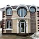 Этот проект отделки фасада частного дома представляет собой смелое смешение элементов классики, модерна и конструктивизма. Входная группа в виде замочной скважины, несимметричные руст по углам, эркер с остеклением, необычное решение окон создают яркий запоминающийся дизайн фасада небольшого частного дома скромной кубической формы.