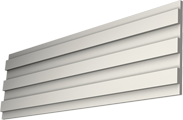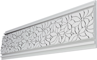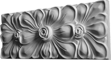 Еще одна интересная декоративная деталь - прямоугольные панели, выполненные из молдинга мм0560 с цветочным рисунком. Панели, вытянутые в поперечном направлении уравновешивают устремленные ввысь колонны, гармонизируя фасад. Также панели используются в качестве подоконных элементов для окон бокового фасада гостевого дома.
