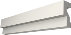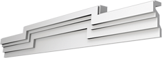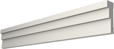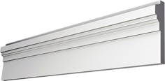 Ограждение прямоугольного балкона второго этажа составили массивные четырехугольные тумбы, для облицовки которых использовался молдинг мм0600 с рельефной поверхностью.
