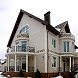 Этот коттедж с гостевым домом служит удачным примером оформления фасада в стиле модерн и использования разных видов фасадного декора: лепнины из полиуретана (Архитана), художественной ковки и мозаичных панно из керамической плитки.