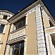 Крыша полукруглой террасы, одновременно являющаяся полом балкона второго этажа, опирается на ряд прямоугольных колонн. Архитектурный декор фасада из полиуретана обладает некоторой пластичностью, что как раз и позволило придать стандартным молдингам непосредственно во время монтажа нужный радиусный изгиб для окантовки краев балкона. Стройность и изящность колоннам придали окантовки из молдинга мм0610.