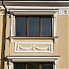 Различие в оформлении узких одностворчатых окон эркера и трехстворчатых окон главного фасада заключается только в использовании консолей. Консоли кс0160 с рельефными бороздками поддерживают сандрики, а консоли с чеканно пирамидкой кс7050, размещенные под подоконными элементами больших окон, несколько скрадывают их ширину. Визуальное вытягивание в высоту полукруглых фронтонных окон достигается не только использованием консолей, но и благодаря центральному веерному замковому камню км7030.