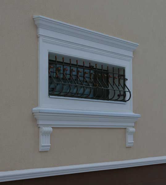 Верхним обрамлением окон первого этажа и подоконными элементами всех окон послужили сандрики сс0014 и сс0013.
