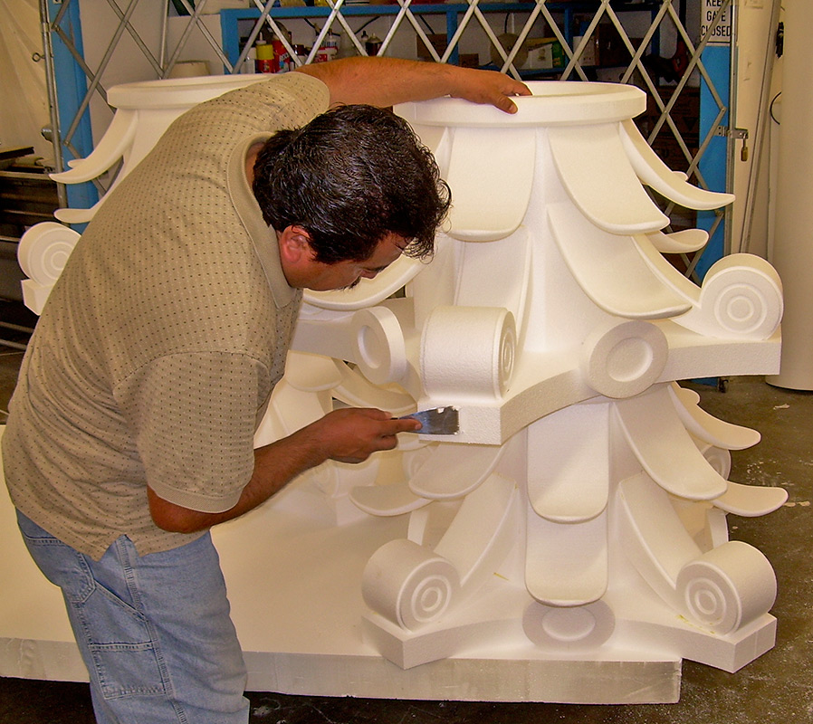 Получение сложного рельефа капители декоративных колонн из пенопласта.