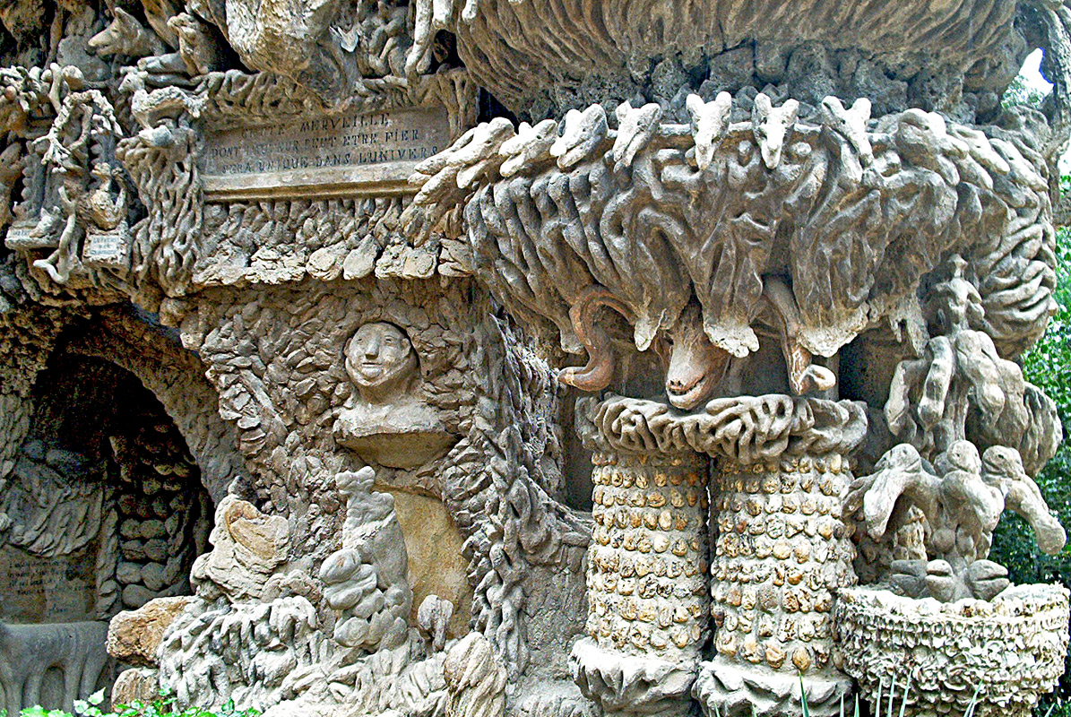 Сложная лепнина, барельефы и скульптура, созданная архитектором-любителем Шавалем* при оформлении "Идеального дворца"(Le palais idéal) в 1888-1921 гг. на основе произведений Гауди. Франция.