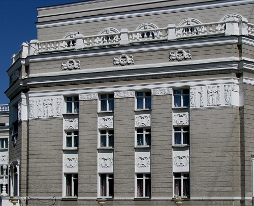 Тематические барельефы на здании оперного театра. Стиль классицизм. 1904-1912 гг. Екатеринбург.