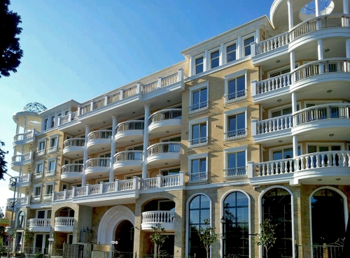 Прямые и радиусные балюстрады на здании Вилла Рома. Несебрь. Болгария.