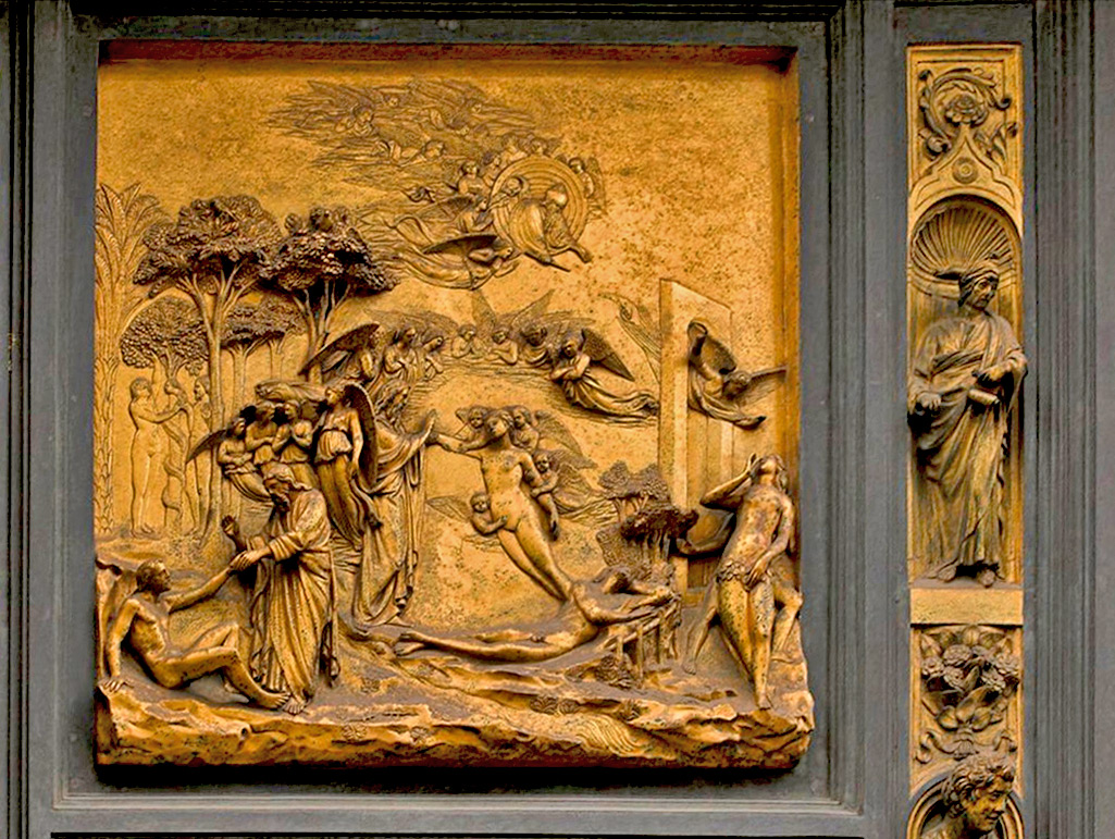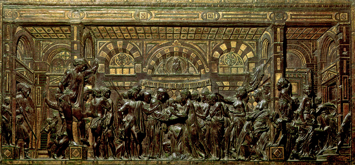 Многоплановый барельеф. Фрагмент восточных ворот баптистерия. Л.Гиберти 1425–1452 гг., Флоренция.