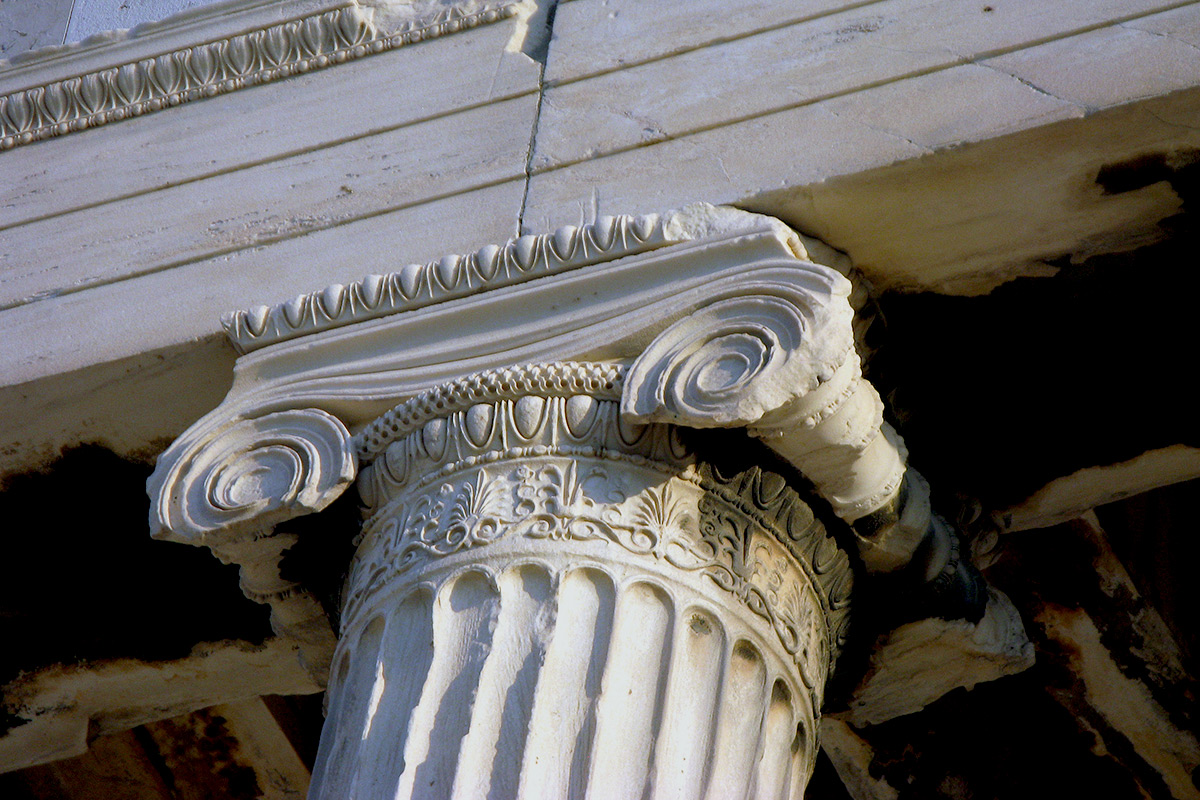 Мощная каменная колонна являлась опорой, поддерживающая верхние элементы конструкции здания: балки перекрытия, кровлю, фронтоны.