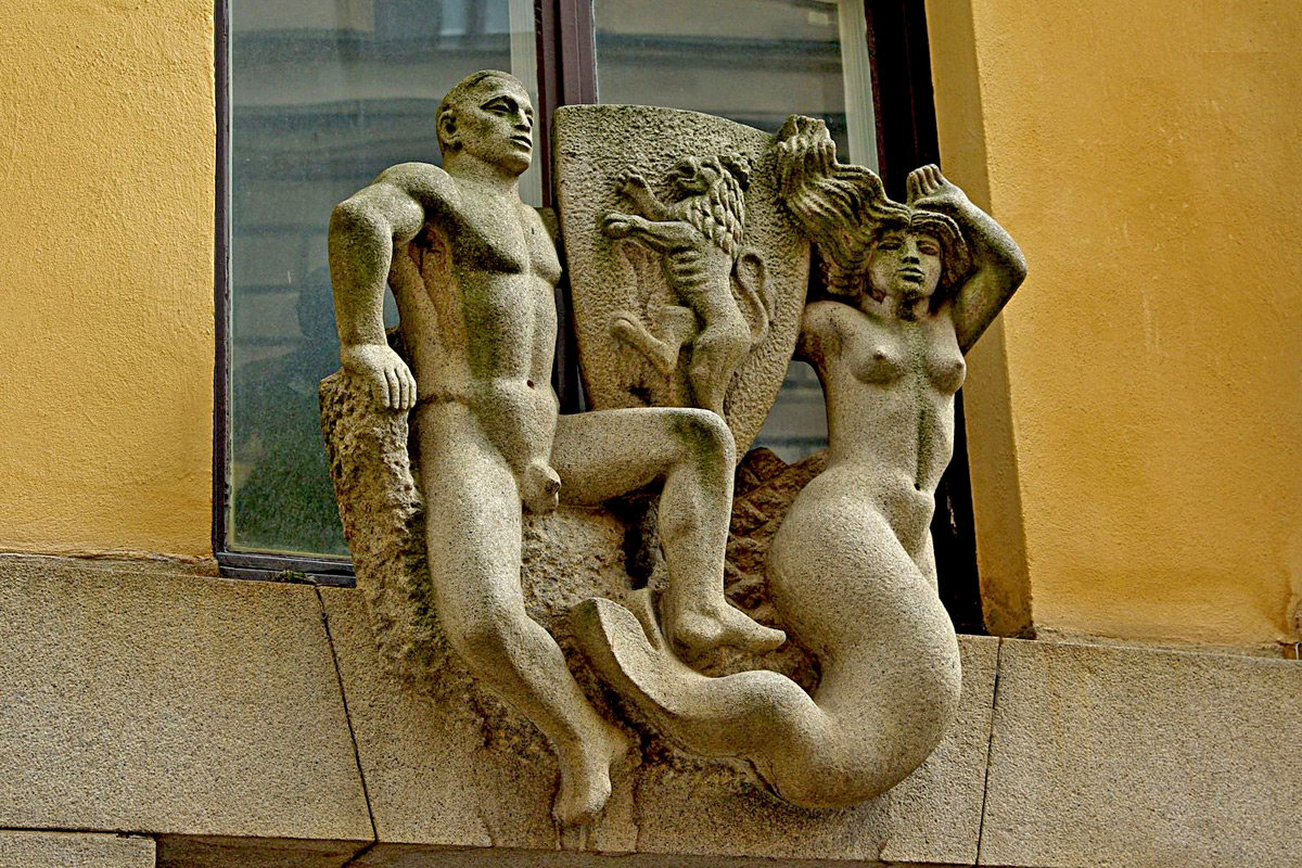 Глубокий барельеф на доме. Стокгольм. Финляндия.