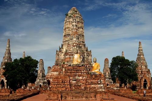 Скульптура и барельеф храмового комплекса Таиланда Чайваттханарам (Chai Watthanaram) . Аюттхае (Ayutthaya).