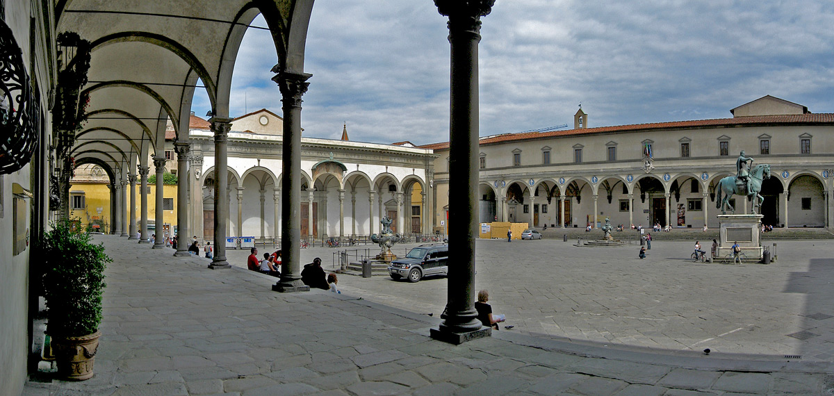 Колонны Воспитательного дома в стиле Ренессанс во Флоренции. архитектор Брунеллески. 1419 г.