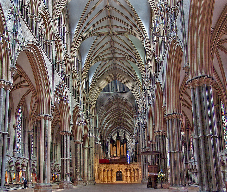 Растительный объемный орнамент колонн в готическом Линкольнском соборе (12-14 вв.)