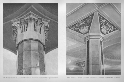 Верхняя часть колонны или пилястр во времена ампира позолочена, украшена коринфской лепниной. Классицизм использовал в украшении преимущественно элементы коринфского, композитного декора, который мог смешиваться с другими стилями. Такой декор венчающей части колонн или пилястр сохранился в позднем классицизме, а также классицизме советском, сталинском ампире.