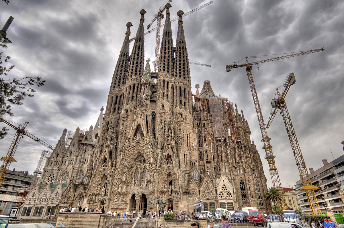 Фантастический собор Саграда Фамилия (Святое семейство) продолжает достраиваться и сейчас. Архитектор Гауди, Барселона.