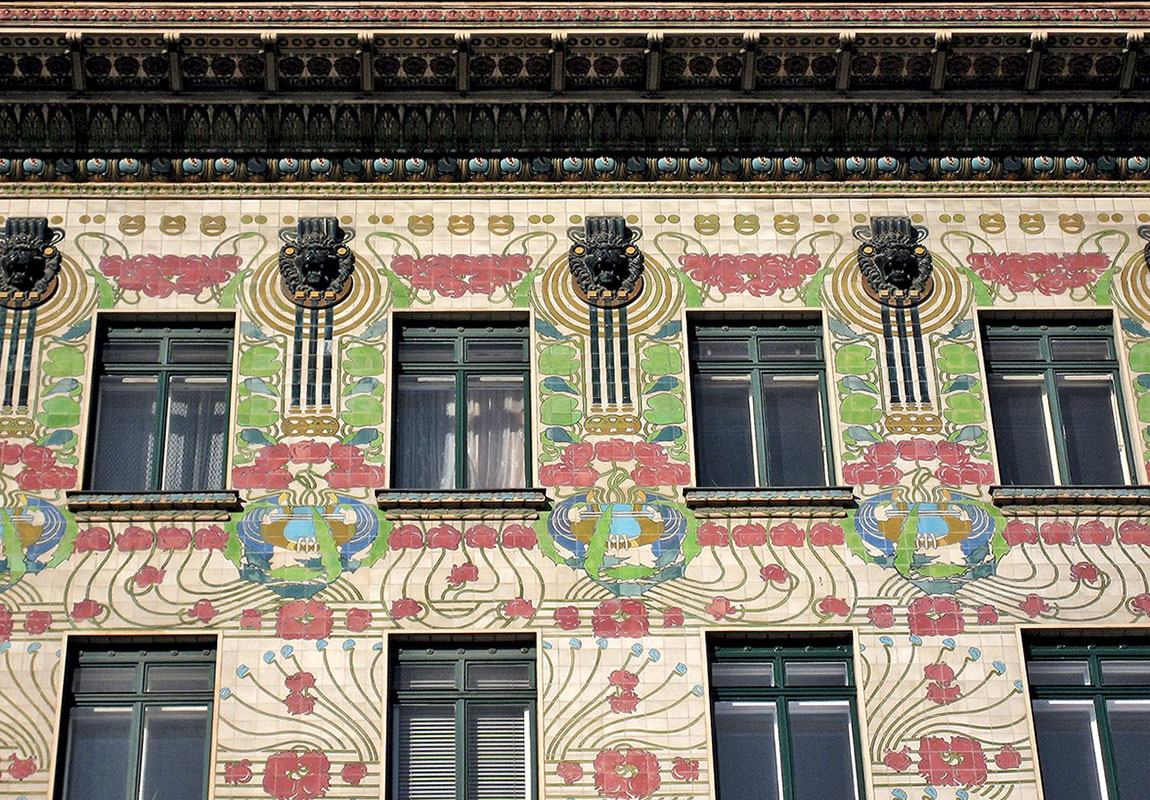 Отто Вагнер (Wagner, Otto. 1841–1918 гг.) представил иной модерн в архитектуре Вены в расписном здании Майолике-хауз (Majolika_house) (1898), Здании почты в Вене (1910).