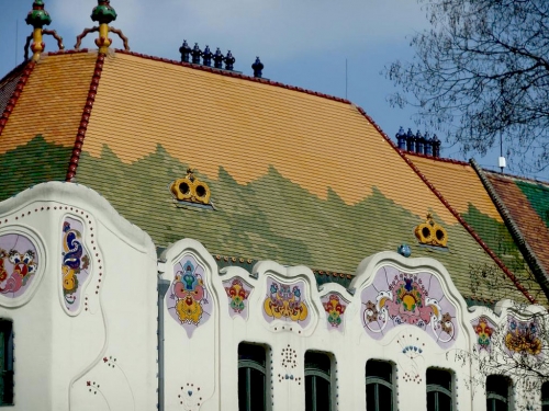 Дворец «Цифра Палота» (Ornamental Palace). архитектор Маркуш Гейза (Géza Márkus), 1902 г., г. Кечкемет. Болгария. Закругленные контуры фасада декорированы орнаментом в стиле модерн - психоделическим узором, основанным на фольклорном рисунке.