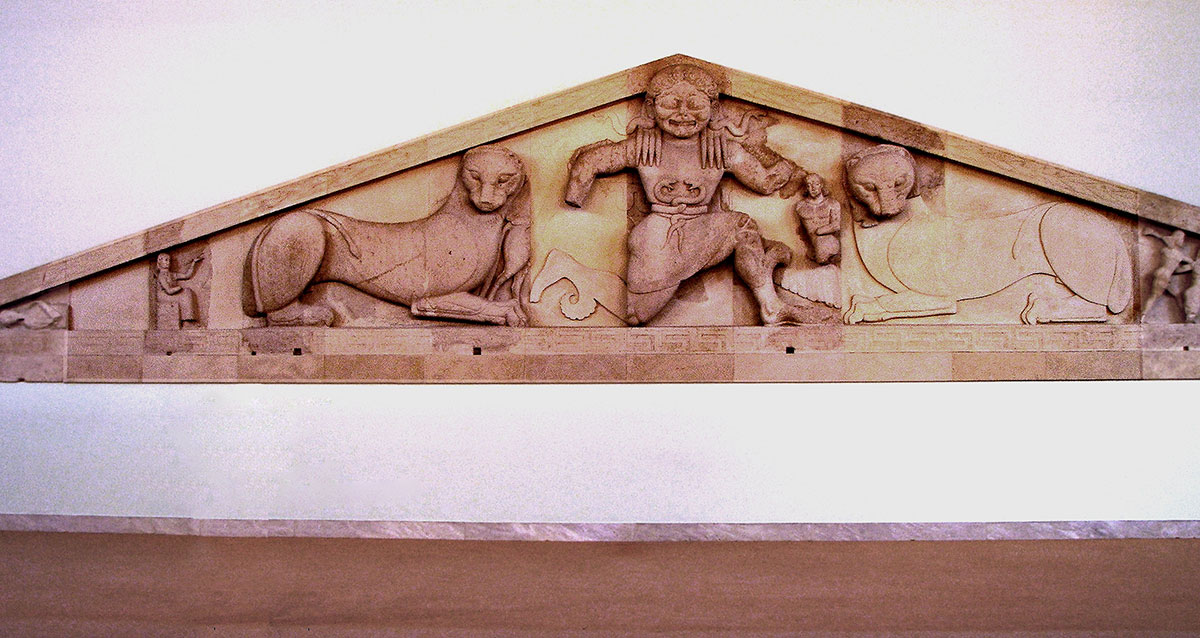 Фронтальный симметричный декор храма Артемиды на острове Корфу. 580 г.до н.э.