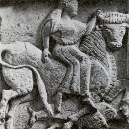 Метопа храма "С" в Селинунте "Похищение Европы".