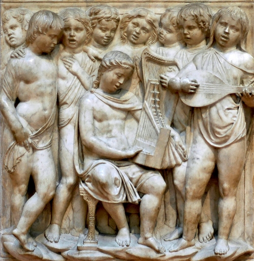 Лука делла Роббиа. Композиция изображения группы поющих детей. Кантория. Мрамор. 1438 г.