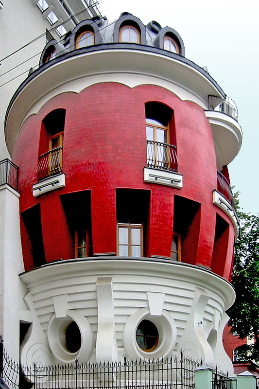 Дом с овальными окнами построен по мотивам модерна.