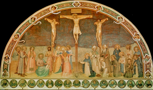 Византийская фреска с изображением Распятия Христа, где у основания креста покоится Адамова голова – одна из центральных деталей композиции.