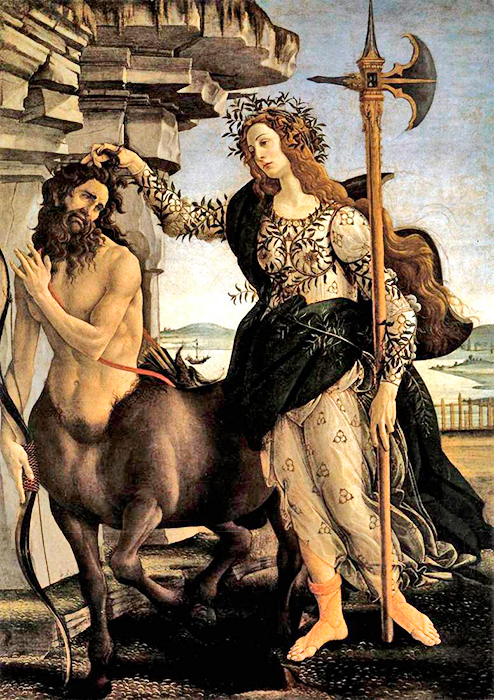 Фрагмент картины Сандро Ботичелли, где изображена Афина-воительница и кентавр.