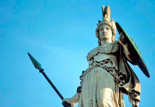 Статуя Афины Паллады со щитом и копьем в руках.