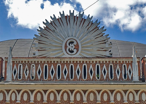 Акротерий над аттиком одного из зданий эпохи Ренессанса, представляющий собой полукруг с лучами различной формы.