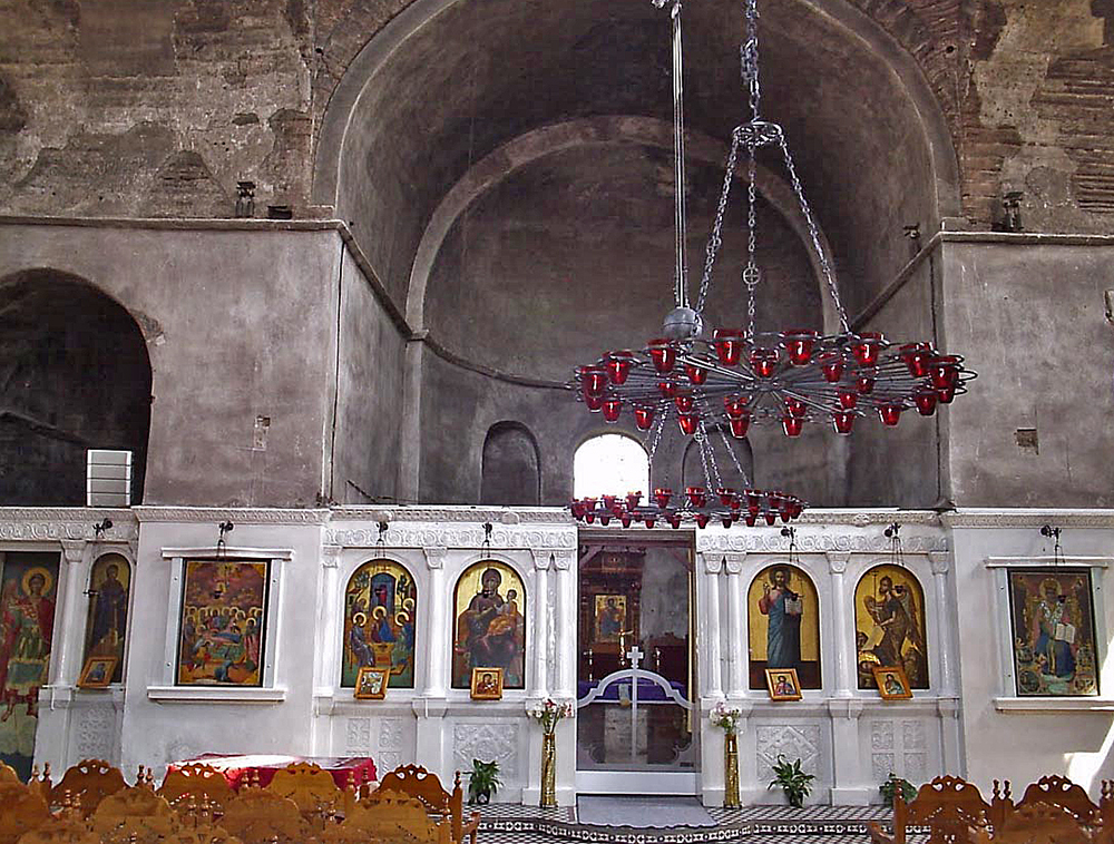 Сплошная алтарная преграда одного из византийских храмов украшена расписными иконами и церковными картинами.