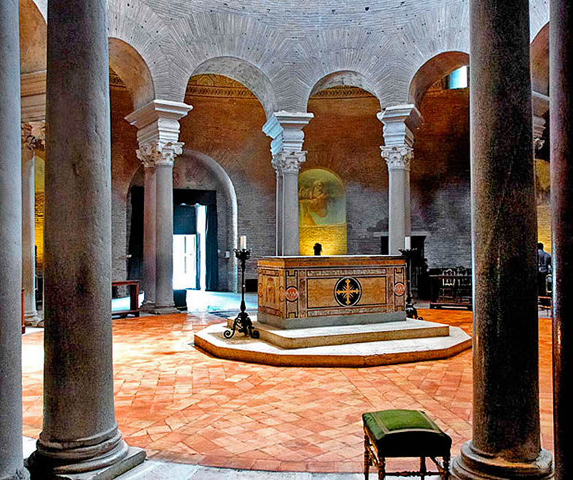 Амбулаторий базилики Санта-Констанца, ведущий из главного нефа к боковым капеллам с захороненными мощами святых и праведников.