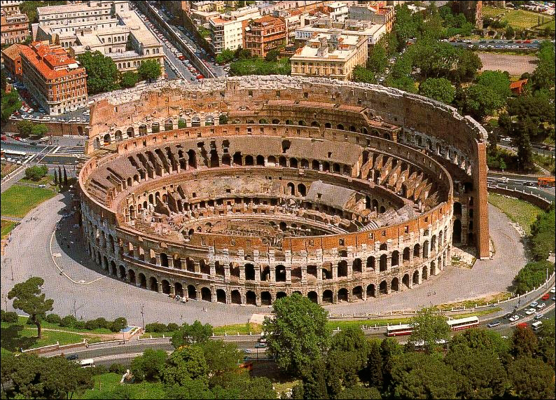 Колизей или Флавиевм афитеатр является образцом античных арен для разного рода зрелищ.
