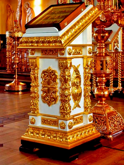 Аналой перед иконостасом Спасо-Преображенского храма.