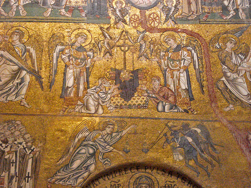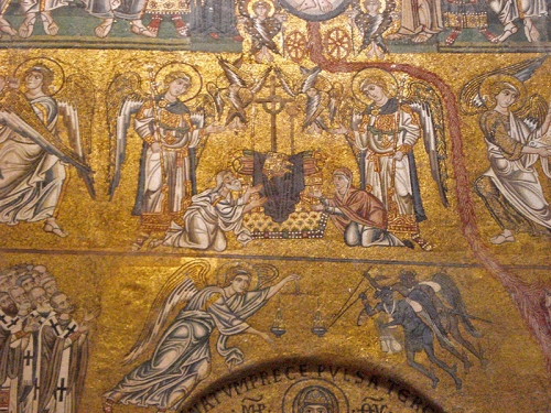 Ангелы на фреске византийского Храма Св. Софии в Константинополе, изображающей Иосифа и Деву Марию, которым посланники Бога принесли весть о рождении Иисуса.