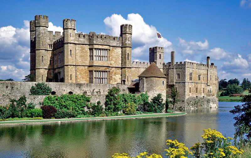 Один из первых замков, построенных в англо саксонском стиле, Замок Лидс, характеризуется каменными выступающими карнизами и подчеркнуто плоскими завершениями башен – традиционными элементами этого направления.