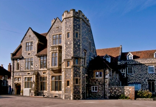 Школа Кингс-Скул, по легенде, также основанная Августином Кентерберийским, увенчана традиционными для англиканского стиля плоскими завершениями башен с каменной окантовкой.