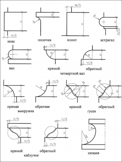 Виды криволинейных архитектурных профилей.