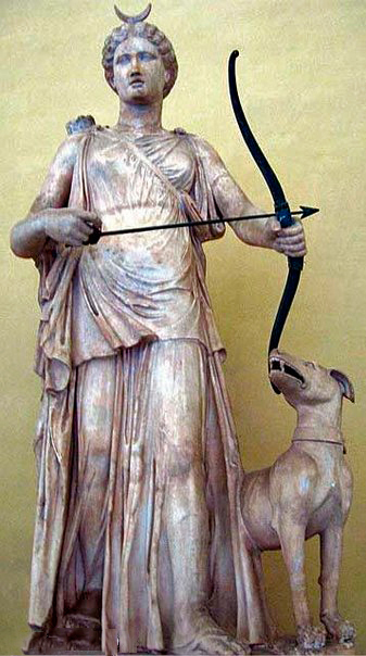 Артемида – с греческого «Ἄρτεμις» (в римской традиции – Диана); богиня охоты и животных, брака и плодородия в античной мифологии. Артемида также считалась божеством лунного света, целомудрия. В античных культах богини ее спутниками были нимфы, океаниды, а также животные - медведица и лань. Все они в виде скульптур и рельефов были изображены в храмах Артемиды.
