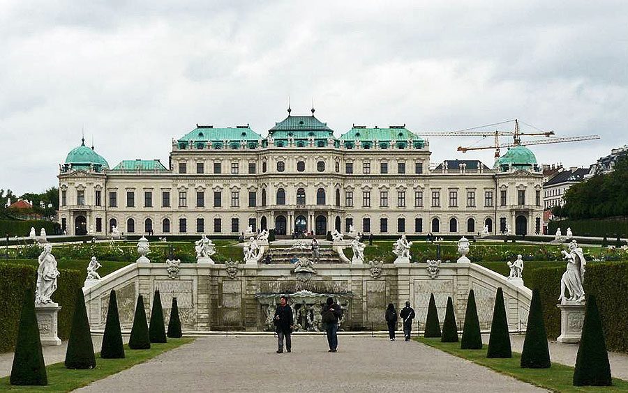 Дворец Бельведер, резиденция принца Евгения Савойского, спроектирована Иоганном Фишером в 1694 году. Принц Евгений Савойский занимался меценатством. Свой городской дворец ему захотелось построить на неширокой улице. Фишер должен был правильно спроектировать расположение парадного здания по отношению к окружающей застройке. Поэтому он задумал сделать так, чтобы стены дворца не имели никаких выступов – были ровными и тянулись вдоль улицы. В данном его проекте очень четко развита схема деления стены, напоминающая структуру стен дворцов XVII века. На первом и втором этажах дворца, оформленных рустованным цоколем, покоятся базы пилястр, которые объединяют два верхних этажа. Пилястры делят стену на отдельные квадры. На плоскости стены выделяются большие окна без ниш. Поэтому рельефные детали и капители пилястр над среднего этажа выглядят, как богатый пластический декор, а порталы – особо выразительны. Продолжил работу над строительством дворца Бельведер архитектор Иоганн Лукас фон Гильдебрандт. Дворец Бельведер (Belvedere), резиденция принца Евгения Савойского, спроектирована Иоганном Бернхардом Фишером в 1694 году.